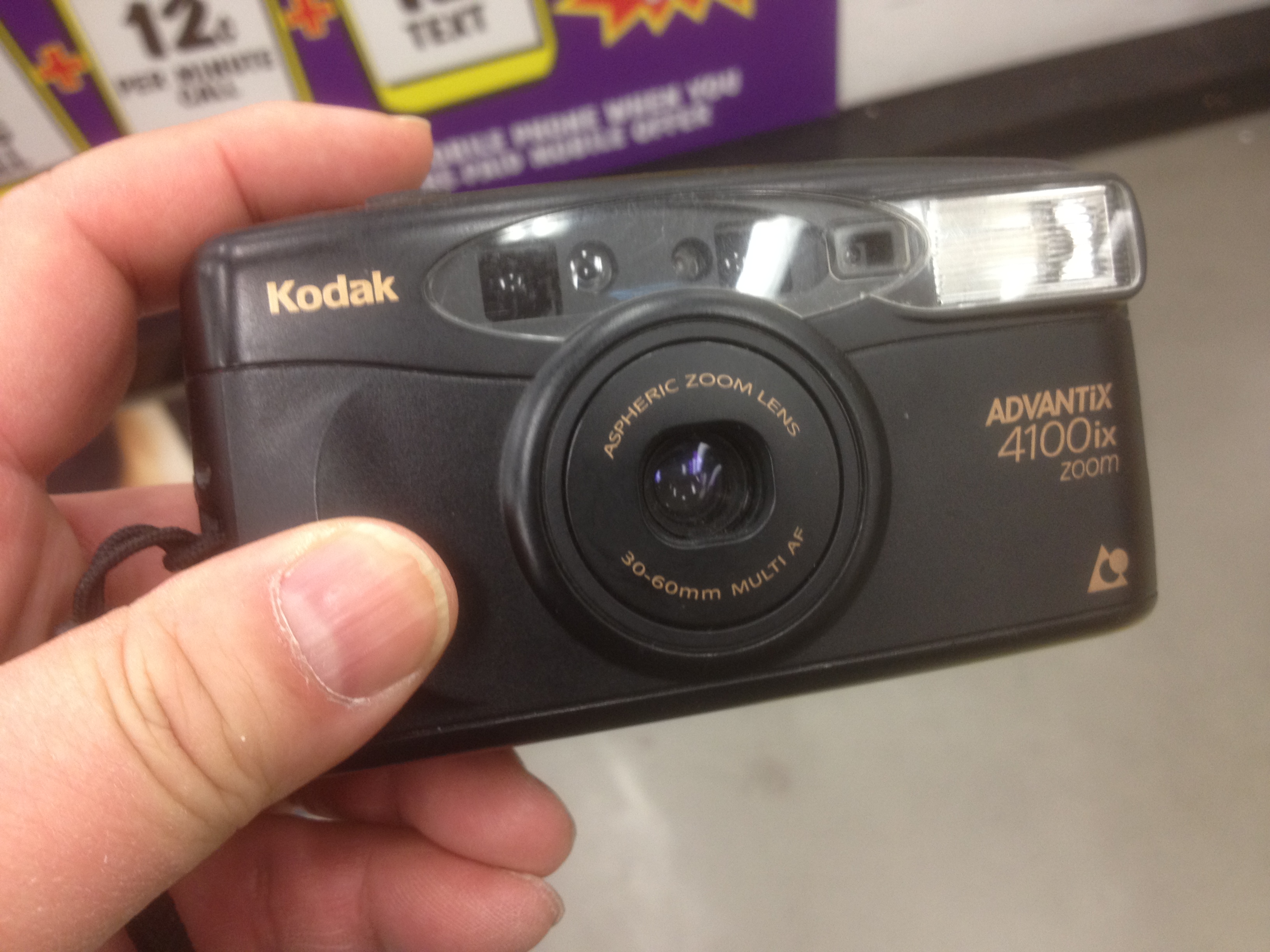 本日、人身御供になったのは、APSフィルム用のKodakのカメラ(ChinonのOEMと思われる)。これを買ったのは15年ぐらい前か。当時Kodakで働いており、工場の売店で社員割引で買ったもの。ご苦労さまでした。ありがとうね。