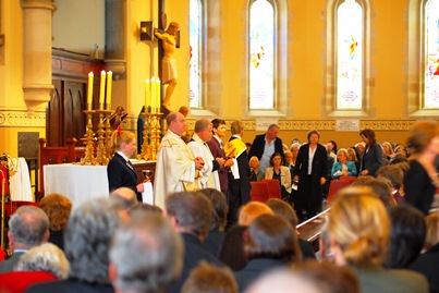完全に教会の行事であり、入口で配られる式次第に沿って進行する。全員で唱和する賛美歌や、言葉などがすべて台本のように書いてある。賛美歌などは、普段見慣れない単語が多く、日本人の私にはとっさに発音が出てこないので、いつもムニャムニャとネコのような発音で節だけ追随して小声で歌うことにしている。