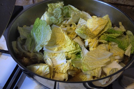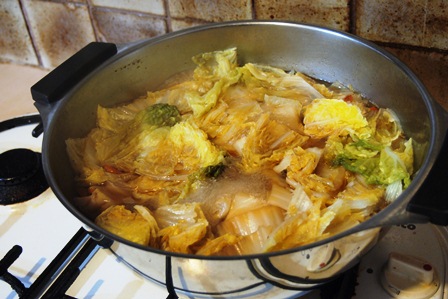 適当にアレンジして,途中,白菜を投入。まあ,ちょっと邪道かもしれないが,野菜が不足気味なので,よしとする。