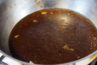 そこに1.5リッターの水を入れて,沸騰したら火を弱めて,ことことと45分間煮る。