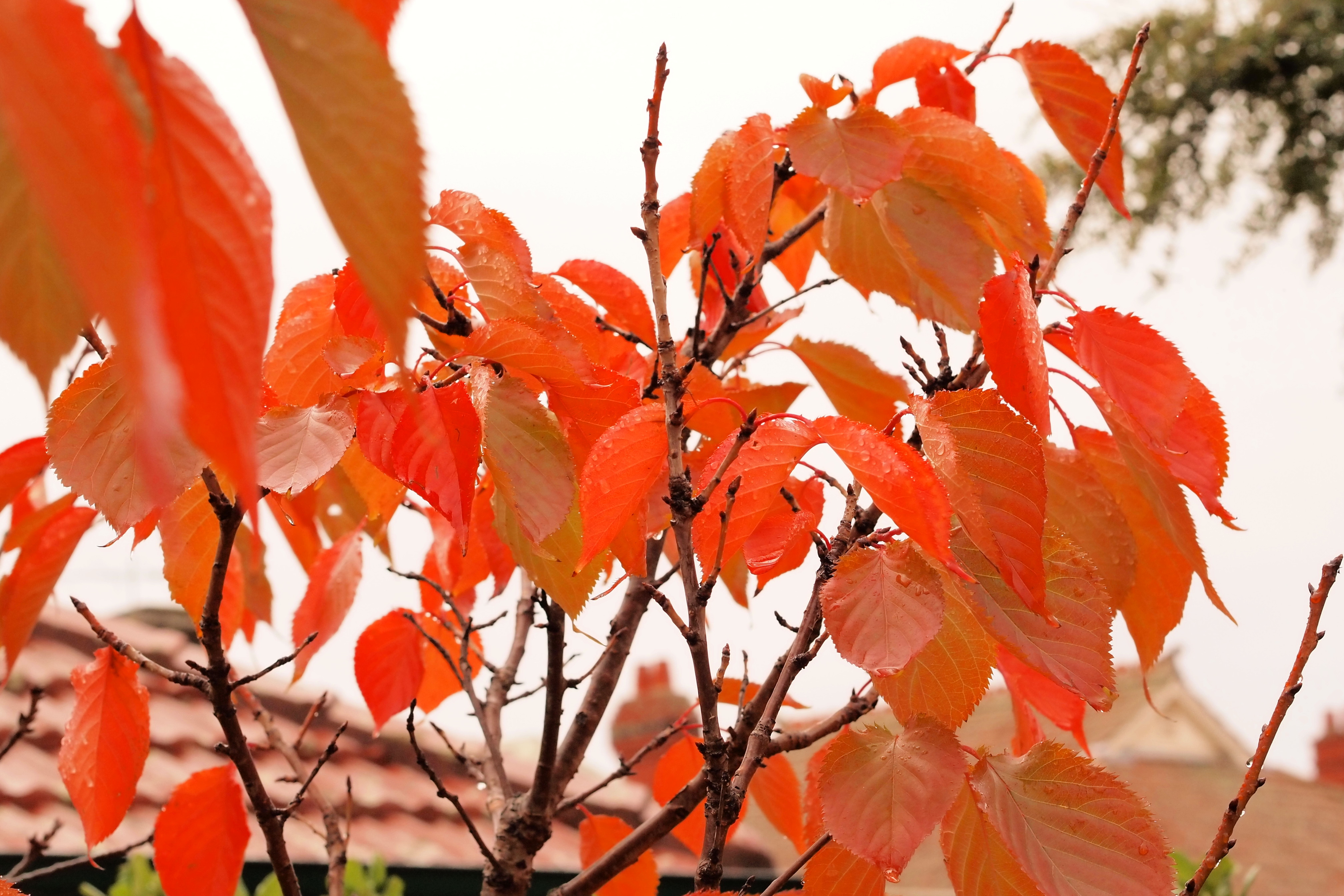 雨上がりの土曜の朝。我が家の「推定桜」の葉がますますいい色になってきた。