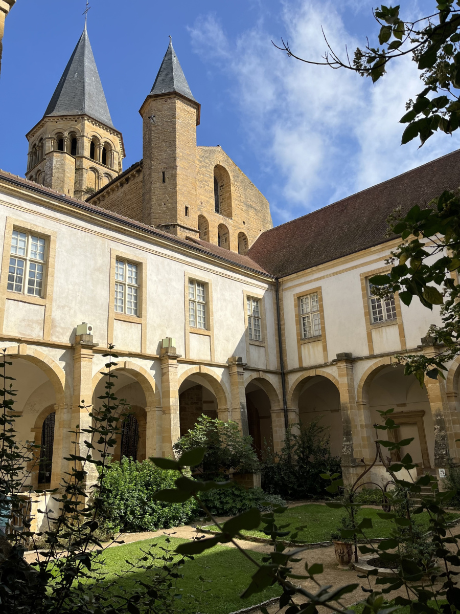 午前中はParay-le-Monialの散策。まず目指すは, ずっと気になっていた大聖堂。 ホテルのそばにあり, 部屋窓を開けると真正面に見えるBasilique du Sacré-Cœurである。聖堂の回り, 付属する施設や聖像などを一通り巡り, 聖堂の中に入った。当然ながら静かな聖堂の中, 祈りを捧げる人もいたりして, 物見遊山の我々は少し肩身が狭い。また聖堂横の中庭も凛とした緊張感に包まれ, 心が洗われる。