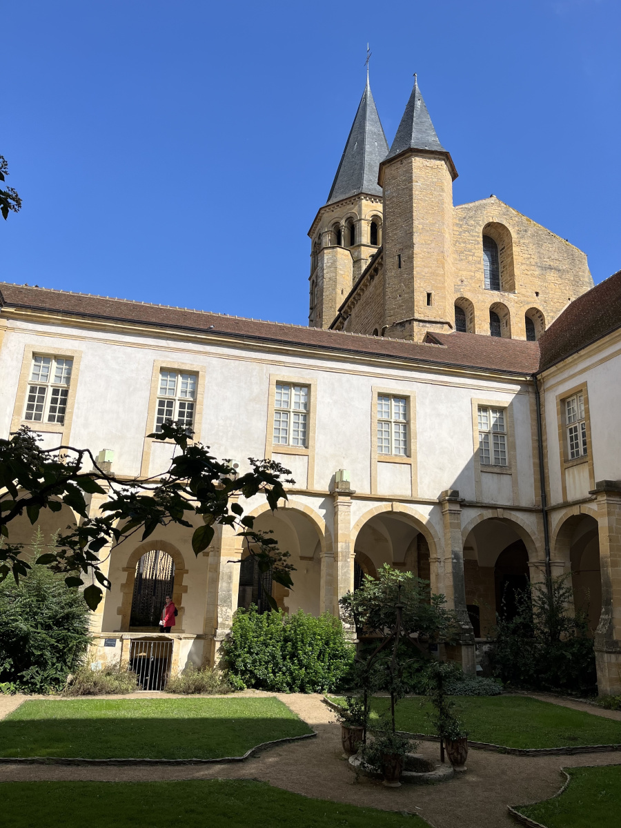 午前中はParay-le-Monialの散策。まず目指すは, ずっと気になっていた大聖堂。 ホテルのそばにあり, 部屋窓を開けると真正面に見えるBasilique du Sacré-Cœurである。聖堂の回り, 付属する施設や聖像などを一通り巡り, 聖堂の中に入った。当然ながら静かな聖堂の中, 祈りを捧げる人もいたりして, 物見遊山の我々は少し肩身が狭い。また聖堂横の中庭も凛とした緊張感に包まれ, 心が洗われる。