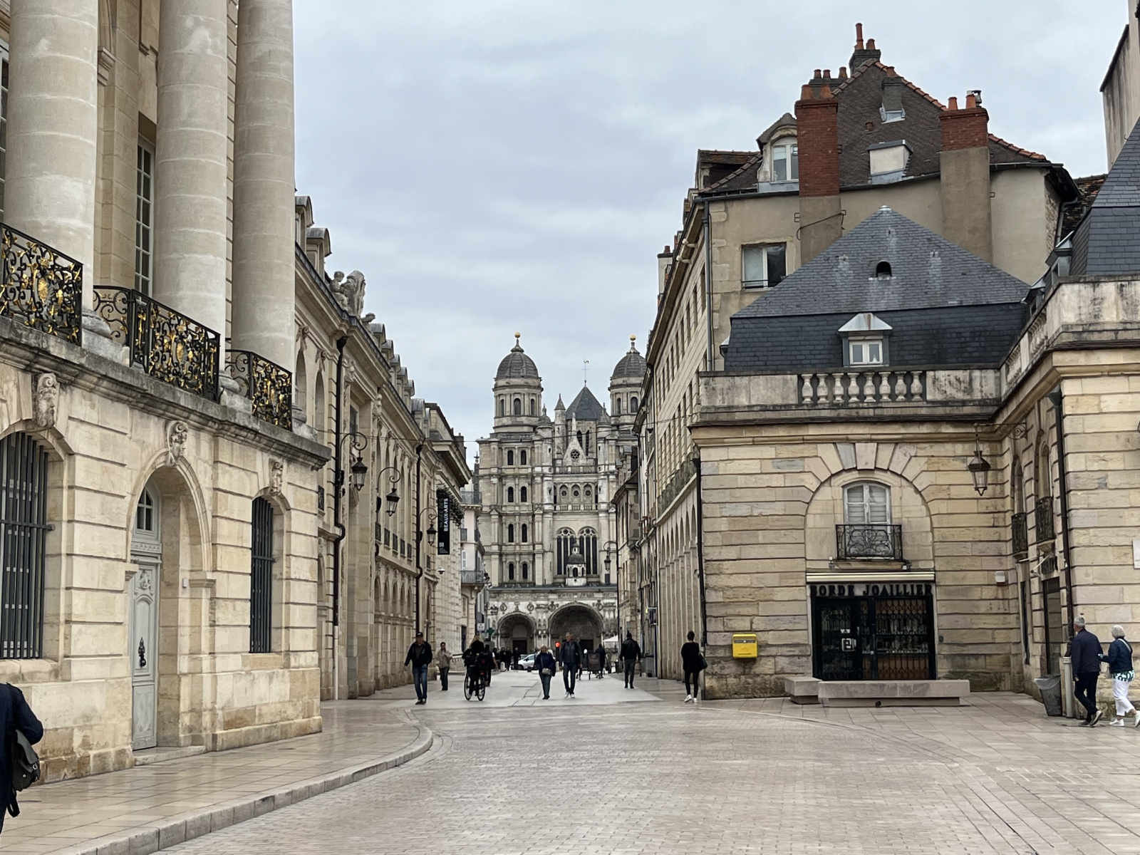 - ディジョンの街。白亜の歩道と壁が素晴らしい