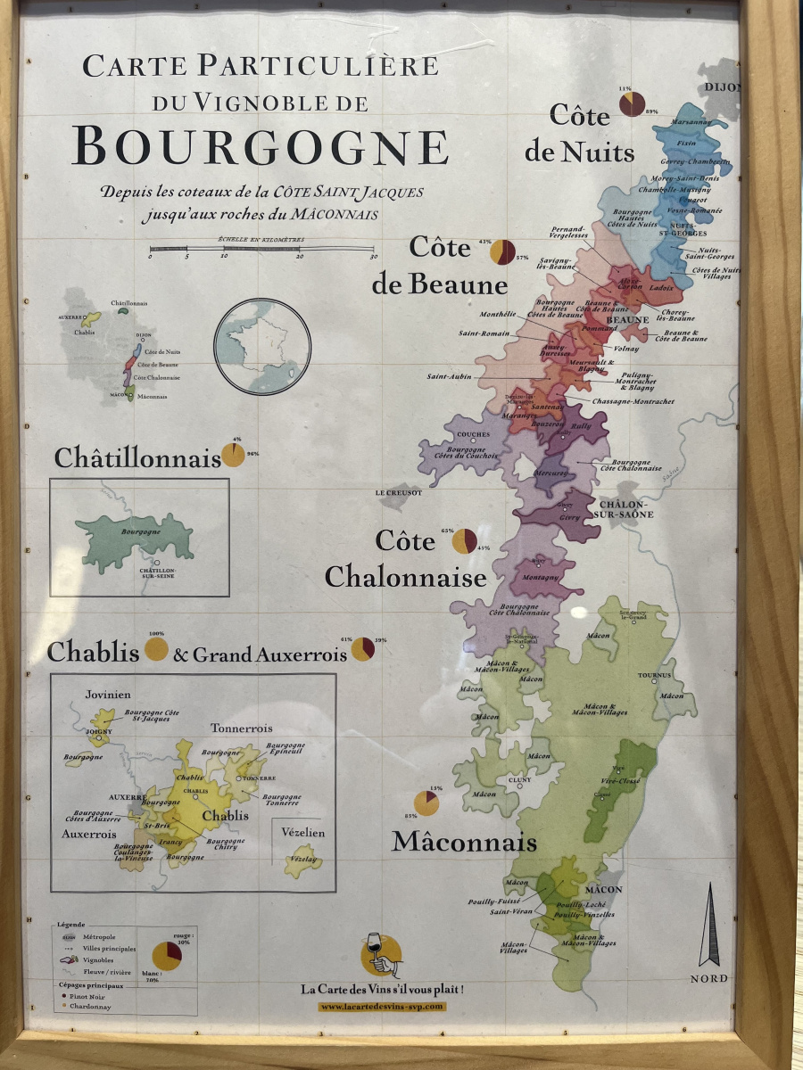 何を食べたかは上記フォトギャラリーを見ていただきたい。名物エスカルゴと牛肉の赤ワイン煮込みは外さなかった。ここの名物料理をWebで調べていて一つ勉強になったのだが, エスガルゴ用のカタツムリはブドウの葉で育てるのだそうで, エスカルゴとワインの名産地は重なるのだそうだ。ブルゴーニュのエスカルゴは他より白っぽくって一回り大きいようだ。これは後日パリでエスカルゴを取ってみて確認できた。あと, ブルゴーニュ地方は内陸なので, 魚料理も基本は淡水魚だ。本日の魚料理はバスの一種の淡水魚で, 白身も白身, 超淡白な料理だった。でも生臭さは一切なく, フランスにもこんなあっさりした料理があるんだなあと認識を新たにした。