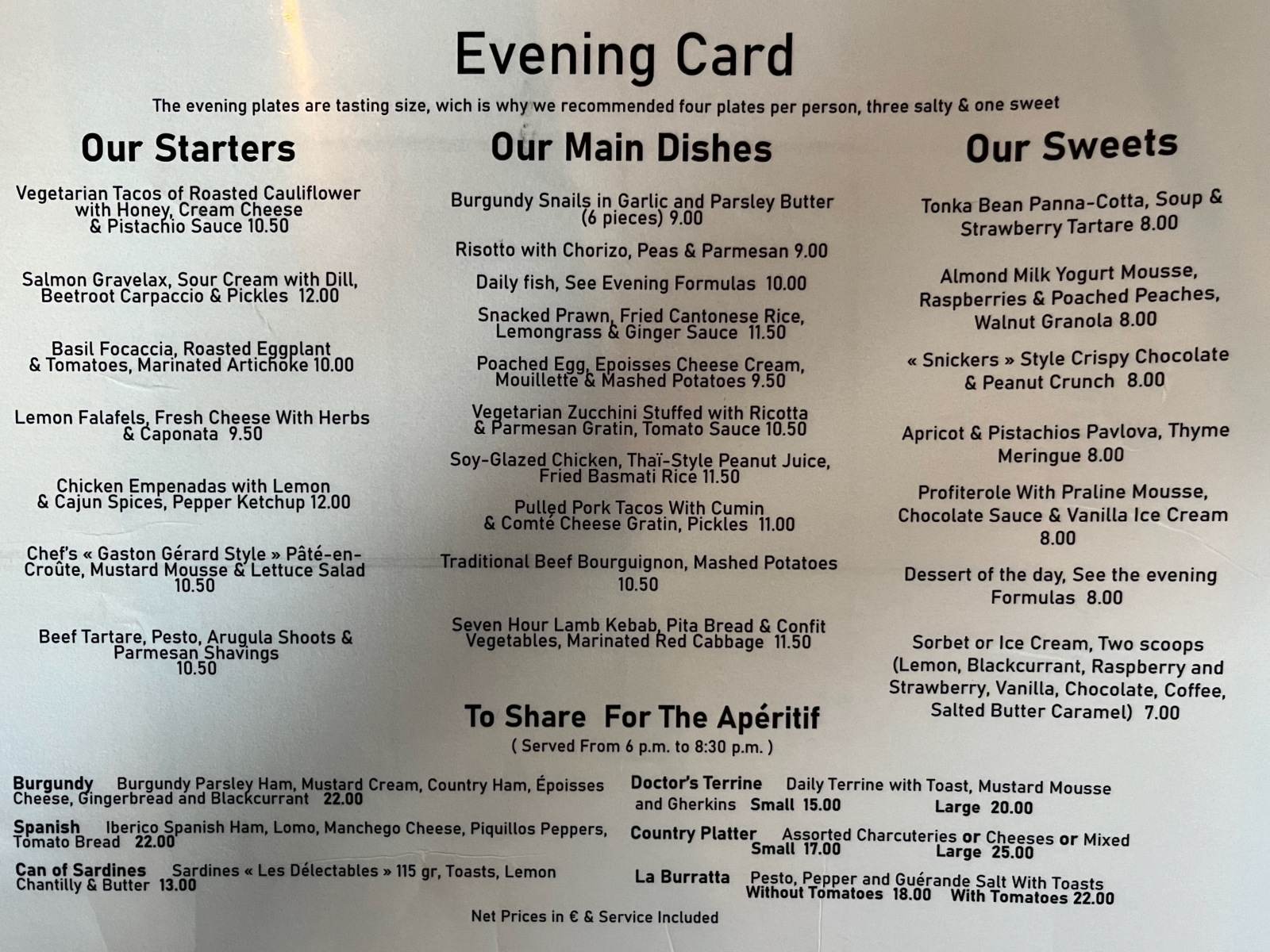 ワインについては何を飲んだか覚えていないが, ブルゴーニュ地方のワインを中心にグラスで3杯ぐらい飲んで, どれも美味しく, 大満足だった。