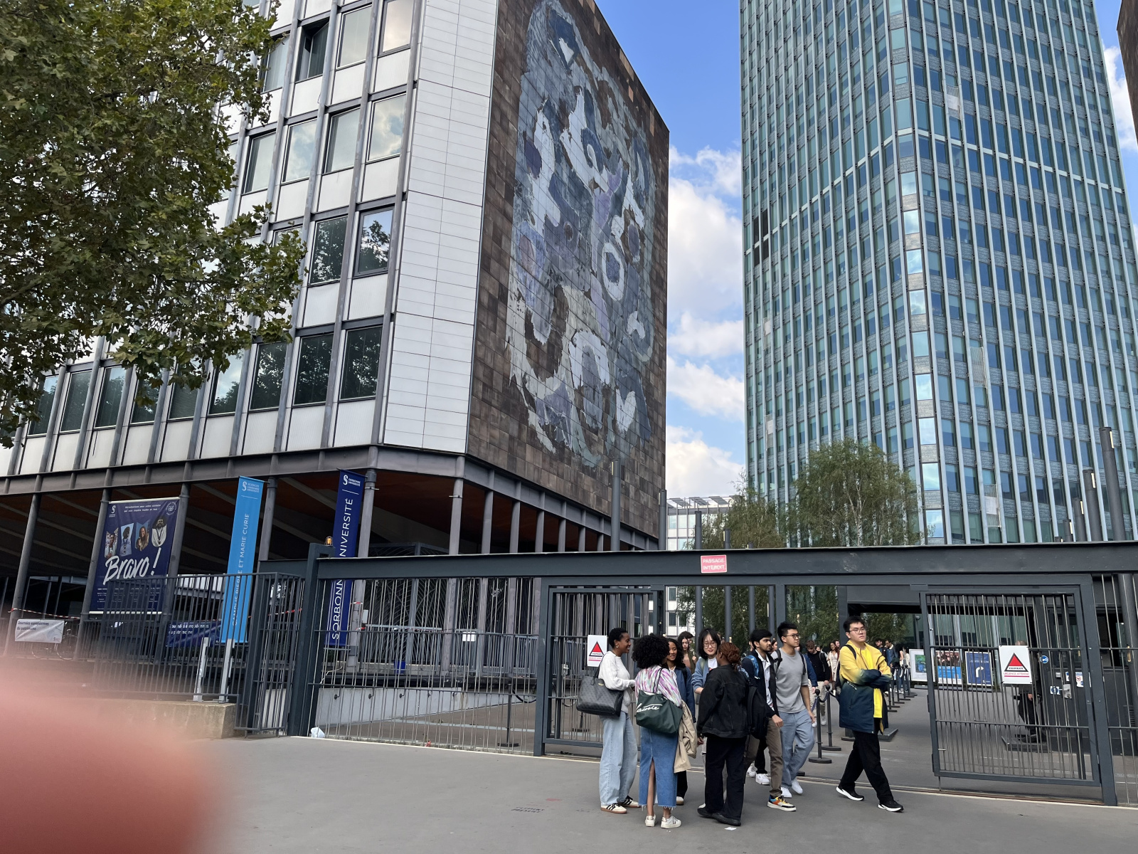 植物園の川と反対側を出て, 地図を見る。次はカルチェ・ラタンまで行こうということで, さらに歩け歩け。北西に向かって歩くと, すぐに右手にソルボンヌ大学が見えてきた。急に周りを歩く人の平均年齢がさがった感じ。