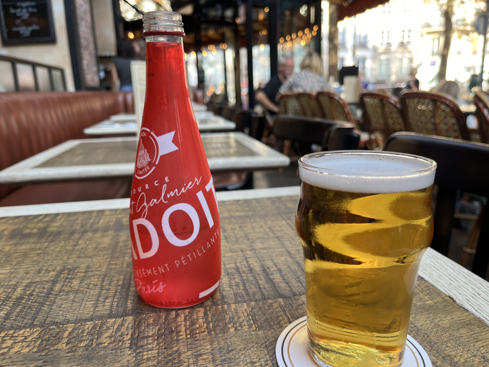やがてカルチェ・ラタンの街並みに入る。左手の高台にPanthéonの丸屋根が見える。賑やかな交差点の一角にあるカフェで休憩。私はビールを一杯。